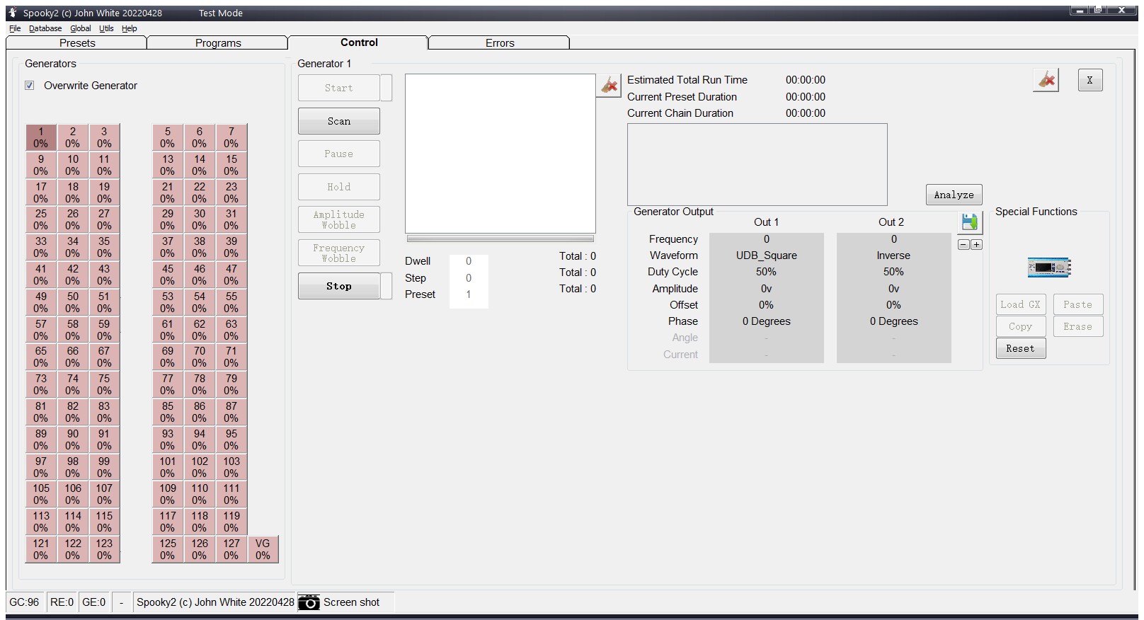 Ga ten slotte naar het tabblad Control, kies een generatorpoort, vink “Generator overwrite” aan en klik op de knop “Start”.
