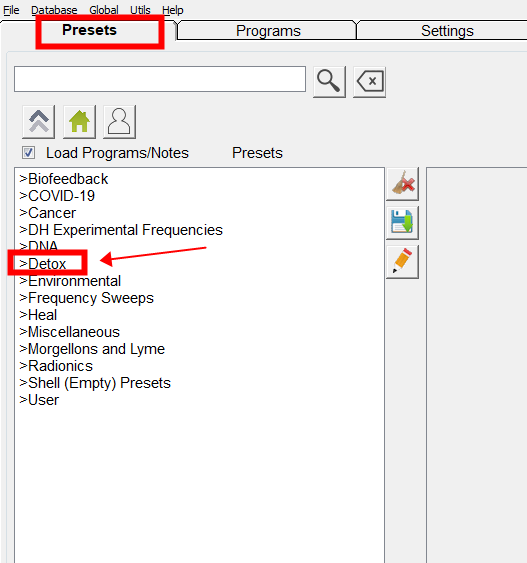 Start je Spooky2-software, ga naar het tabblad Presets, waar je het programma kunt vinden: