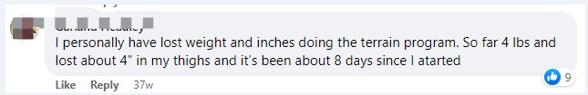 “Persoonlijk heb ik aardig wat gewicht en centimeters verloren met het Terrain programma. Tot dusver was dat 1840 gram en mijn bovenbenen zijn meer dan 10 cm geslonken.”