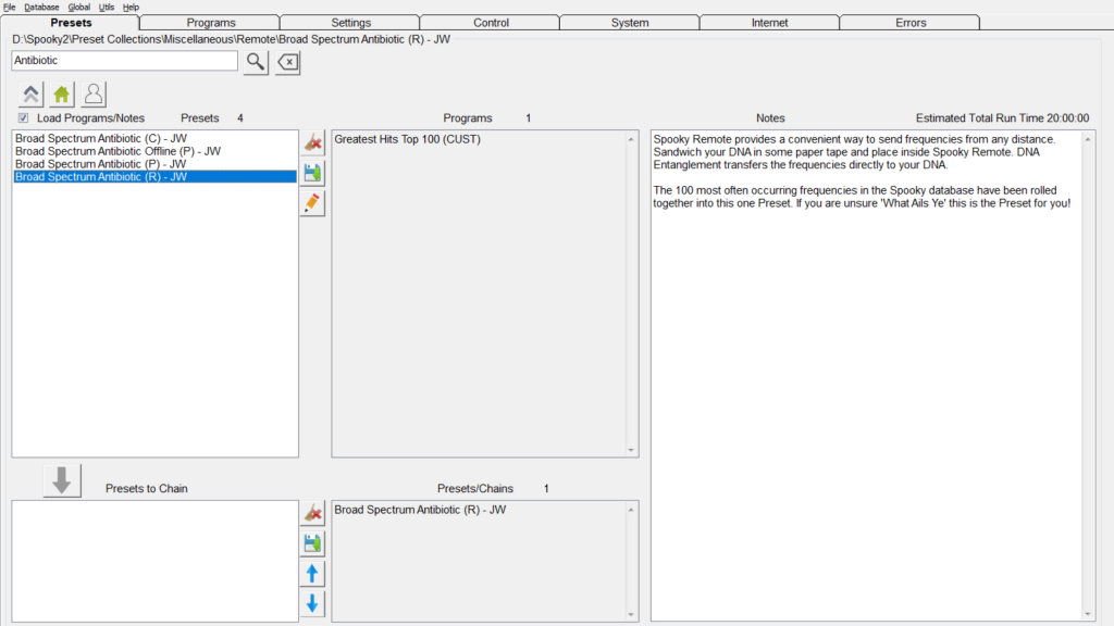 Stap 1: Ga naar het Preset-tabblad en selecteer Shell (Empty) Presets. Afhankelijk van je behoefte, kies je Remote > Healing (R) – JW voor genezing of Remote > Killing (R) – JK voor het verwijderen van microben.
