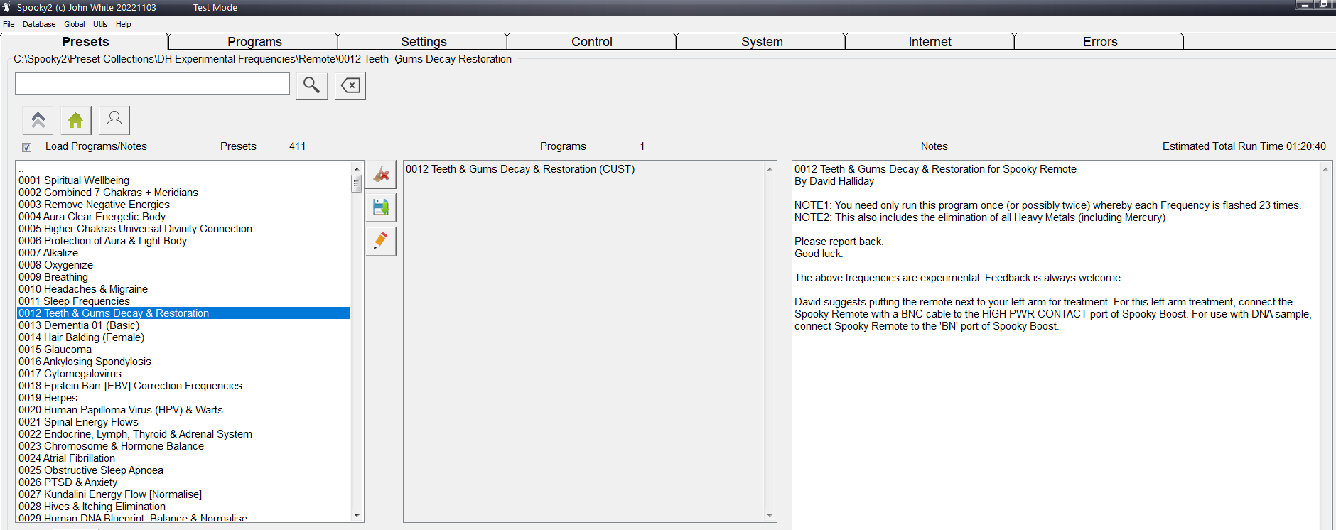 Laten we nu eens kijken naar de magie van de Spooky2 DH0012 Preset: Teeth &Gums Decay &Restoration (Tanden &Tandvlees Verval &Restauratie).