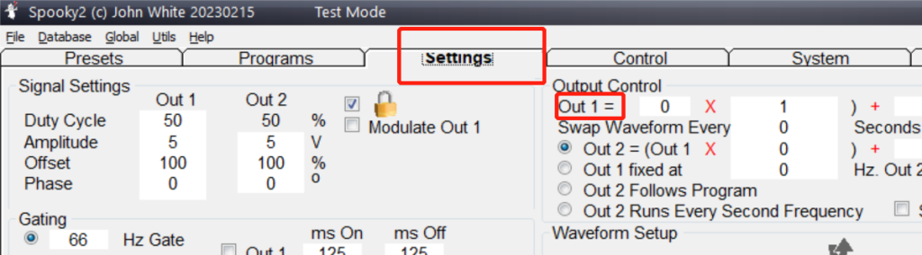 - Selecteer de Spooky2 Scalar Digitizer Slave (GX) – JW preset en ga dan naar de Settings tab. In het kader Output Shadowing stel je ‘Output = [x]’ in, x = het poortnummer van G1.
