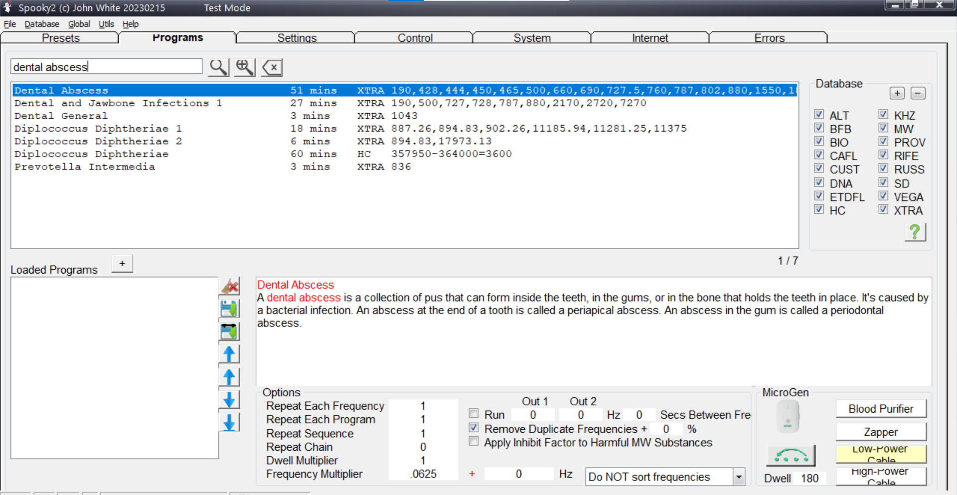 Voor tandabcessen kun je Spooky2 Remote en andere killing programma’s gebruiken om de pijn te verlichten.