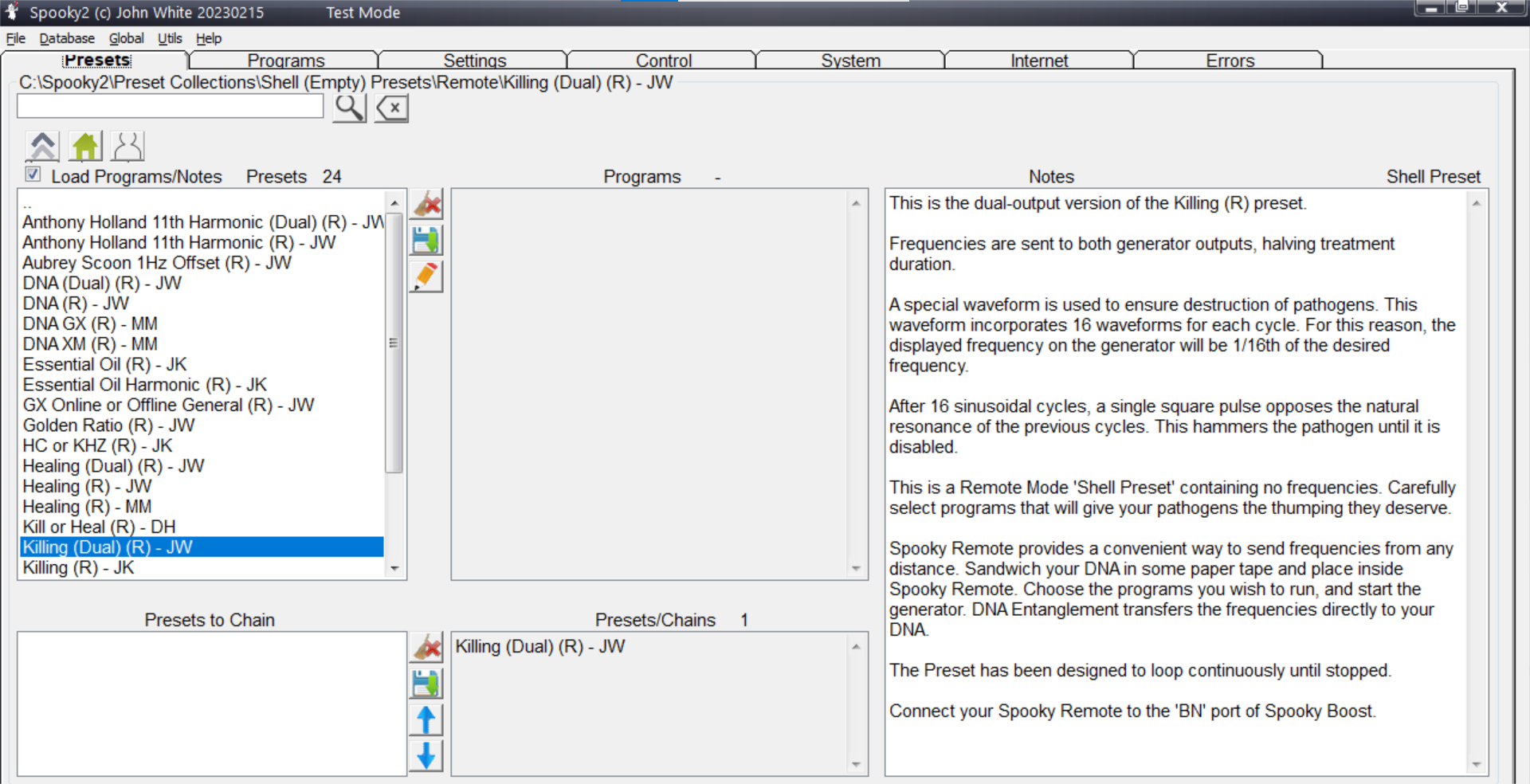 We nemen de Spooky2 Remote modus als voorbeeld.
