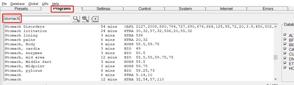 Stap 3: Ga naar het tabblad Programs, zoek naar ‘Stomach’ en kies de gewenste programma’s.
