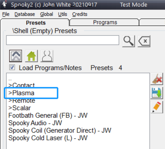 Selecteer onder het tabblad Presets de Shell (empty) presets – Spooky Plasma Advanced (P) – JW