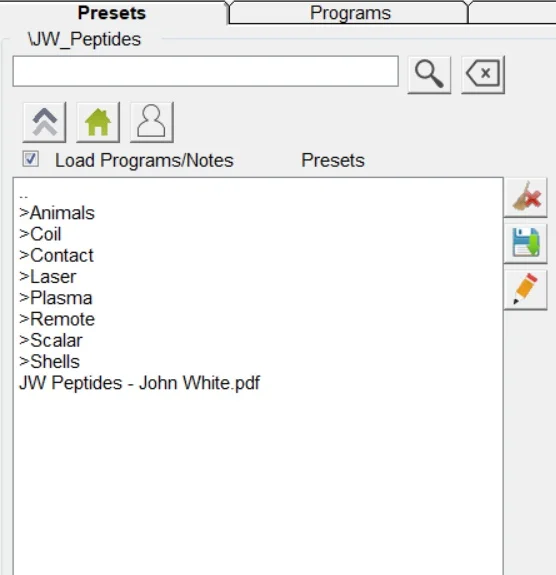 Peptide-presets zijn beschikbaar in de nieuwste Spooky2-software onder het tabblad JW Peptides, waardoor je deze krachtige tools gemakkelijk kunt openen en gebruiken.