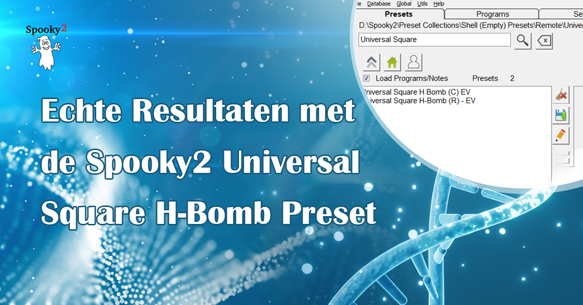 Je kunt deze preset rechtstreeks in de Spooky2-software bekijken door naar het tabblad Preset → Shell (Empty) Presets → Contact of Remote Mode → Universal Square H-Bomb (R) – EV te gaan. Zoek en selecteer vervolgens de programma’s die je wilt uitvoeren, ga naar het tabblad Control, vink Overwrite Generator aan en klik op Start. Als je de software nog niet hebt, kun je deze hier gratis downloaden.