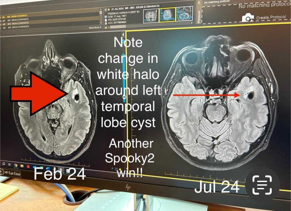 Een opmerkelijk geval documenteerde hoe een witte halo rond een hersencyste aanzienlijk werd verminderd na continu frequentiewerk met Spooky2. De gebruiker schreef de gebalanceerde golfvorm van de H-Bomb toe aan het helpen stabiliseren van neurologische activiteit en het ondersteunen van natuurlijk herstel.