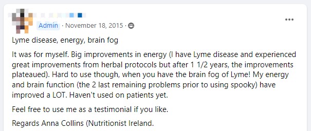 Het was voor mezelf. Grote verbeteringen in energie (ik heb de ziekte van Lyme en ervoer grote verbeteringen door het toepassen van de kruidenprotocollen in de database, maar na 1 1/2 jaar stopten de verbeteringen helaas). Het is wel moeilijk te gebruiken als je de hersenmist hebt die bij de ziekte van Lyme voorkomt! Mijn energie- en hersenfunctie (de 2 laatst overgebleven problemen voorafgaand aan het gebruik van spooky2) zijn ENORM verbeterd. Ik heb het nog niet toegepast bij patiënten.