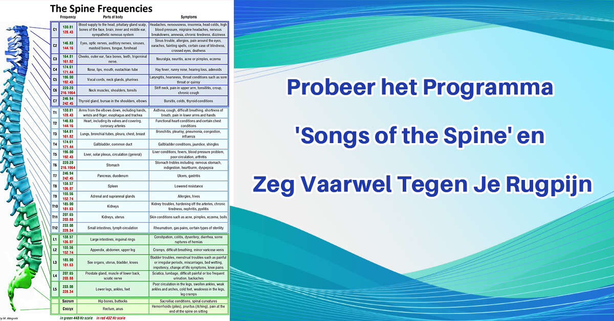 Heb jij ook rugklachten? Probeer dan het Songs of the Spine programma voor de wervelkolom in Spooky2 en verlos jezelf van die eindeloze pijn.