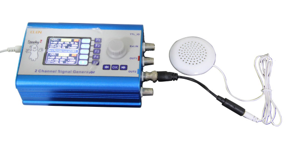 Een manier waarop het kan worden gebruikt, is door het apparaatje in de generator in te pluggen en vervolgens te selecteren welke frequenties (in audiobereik) je wil gebruiken.