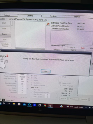 Dit komt doordat Spooky2 je Pulse-apparaat niet ziet. Je moet het Pulse-apparaat aansluiten op een USB-poort op de computer – niet op een hub – voordat je Spooky start. Als je het aansluit nadat je Spooky hebt gestart, kun je de menuopdracht “Apparaat opnieuw scannen” in het menu Utils gebruiken om de Pulse te vinden.